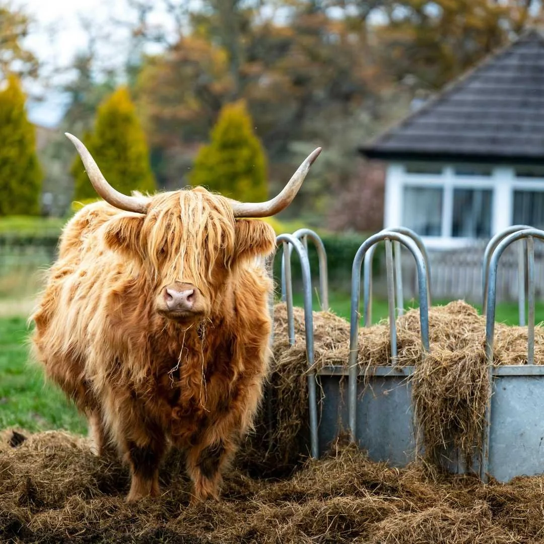They were bred to survive the harshest conditions in the Scottish Highlands: rain, snow, wind, midges, and everything in between. Their thick double-layered coat keeps them warm and dry all year round, meaning they can happily graze outdoors through the worst of the weather while other cows head for the barn.