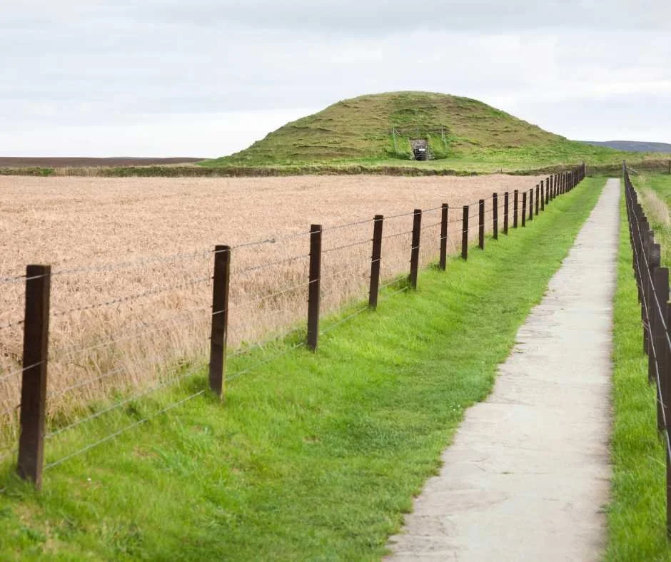The biggest collection of runic inscriptions outside of Scandinavia is contained within this site, and the astronomical significance is displayed by the positioning of the cairn, where during the winter solace, sunlight will hit the back wall of the central chamber.